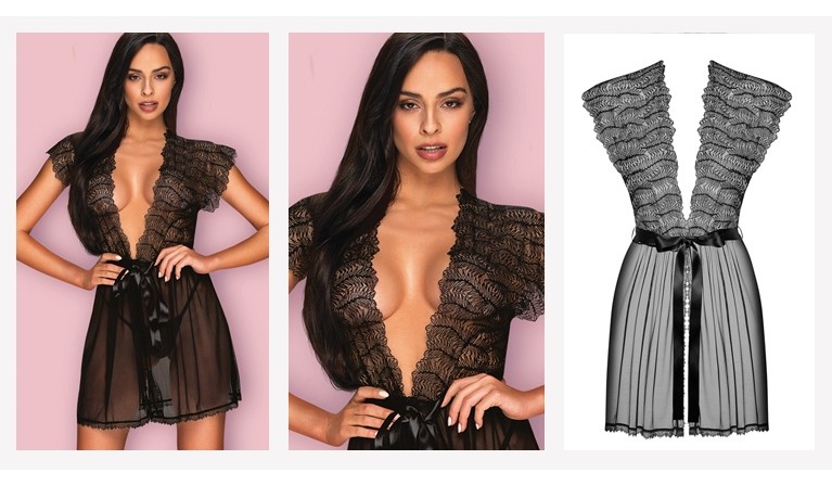 Doce flor robe e tanga em preto