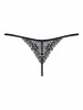 A tanga é confeccionada em material translúcido e possui um rendado floral na parte da frente.